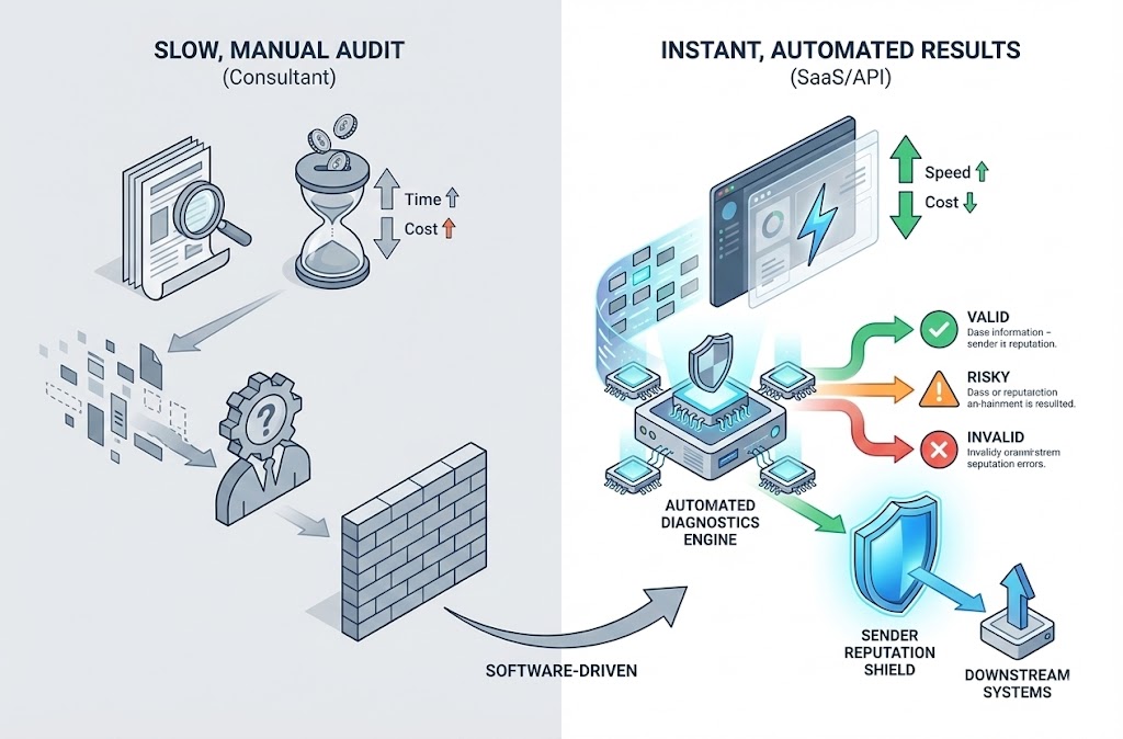 Get expert-level email verification and diagnostics with no retainer, no waiting, and no hourly fees.