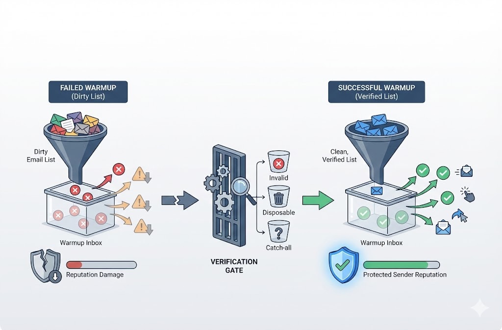 Email verification is the step cold senders skip and the reason warmup fails. Clean your list before you warm up.